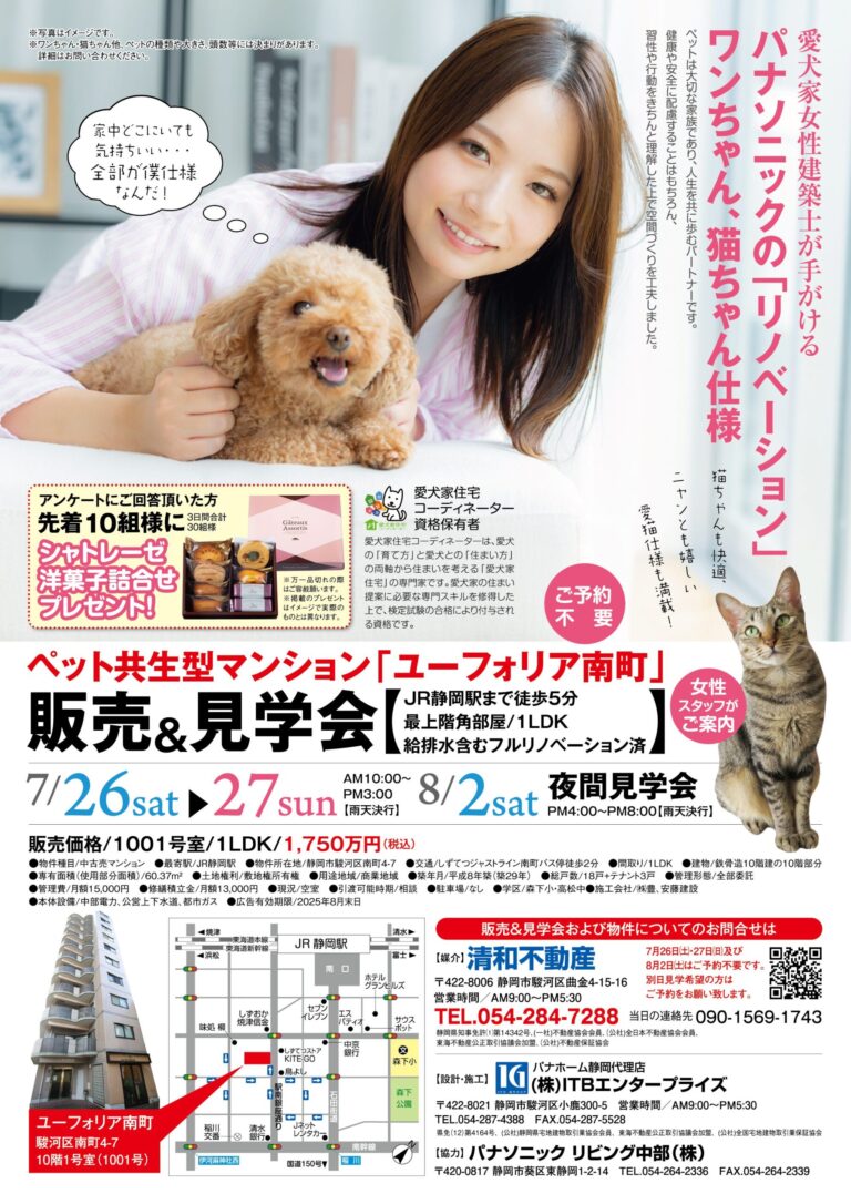 ペット共生型マンション「ユーフォリア南町」販売&見学会 7/26(土)・27(日) / 8/2(土)夜間